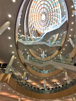 Die letzte Überraschung war der Lernbereich dieses alten Teils der Bibliothek. Ein heller kreisrunder Raum mit einem großen Globus in der Mitte! Er ist umgeben von einem ringförmigen Mezzanin voll mit alten Büchern, die für jedermann verfügbar sind. Es fühlt sich so an, als sei man in einem anderen Zeitalter, vielleicht sogar in einer anderen Dimension! Man hat das Gefühl, es sei wirklich eine andere Welt, hat aber gleichzeitig den kleinen Luxus der modernen Zeit. Luxus, der für das Lernen wichtig ist, wie zum Beispiel Steckdosen für Laptop, Tablet oder Handy an jedem Schreibtisch. Es ist wirklich ein erstaunlicher Ort!